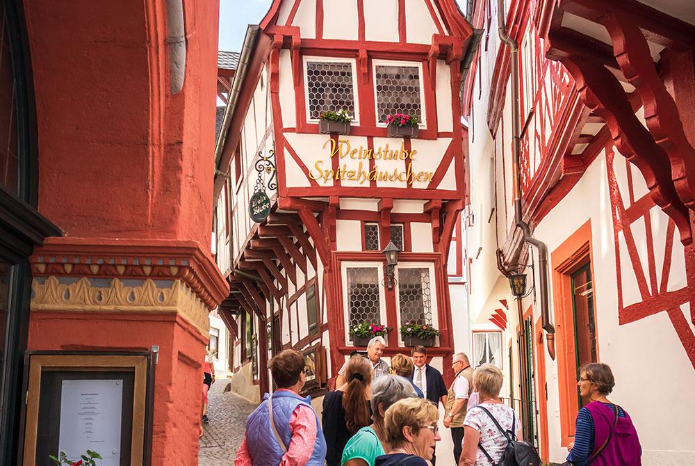 Nog een duodorpje: Bernkastel ligt op de rechteroever en Kues vind je aan de linkerkant. Ook deze plaats is omringt door wijngaarden en heeft het een centrum van vakwerkhuisjes. Er is een heel speciaal vakwerkhuis te zien. Het Spitzhäuschen, een vakwerkhuisje met een spitse gevel dat op een veel te kleine fundering lijkt te staan. Alsof het zo om kan vallen. (Doet het natuurlijk niet). Wil je meer weten over de Moezelwijn dan bezoek je hier het Weinmuseum. Ook interessant: de stadspoort en de ruïne van de Landshut burcht. Even geen zin om te wandelen? Er rijdt een toeristisch treintje van Bernkastel naar Kues en terug.