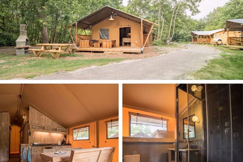 Inkijkje in een lodgetent bij Port Zélande