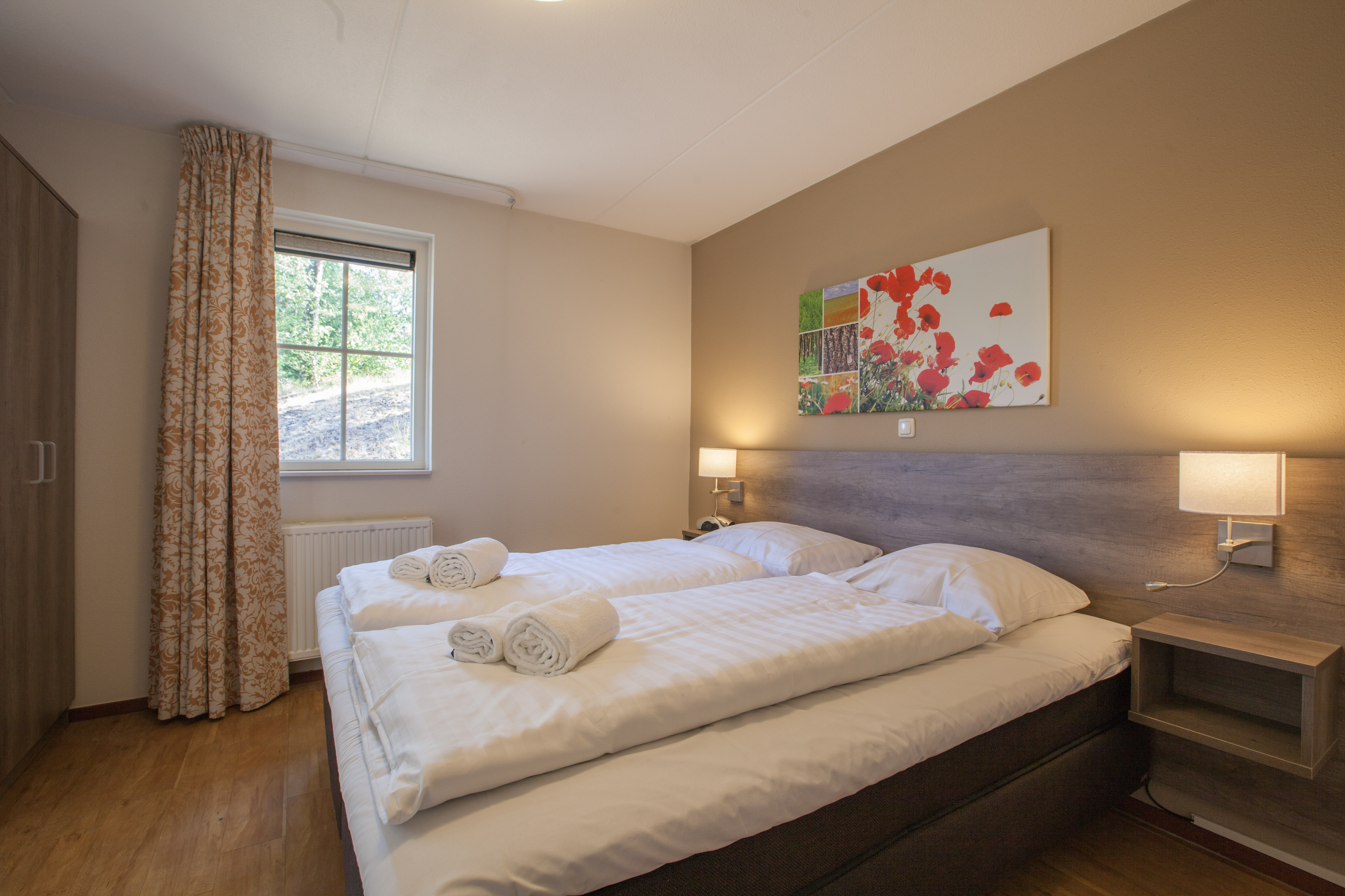 Bedden voorzien van dekbedden en hoofdkussens