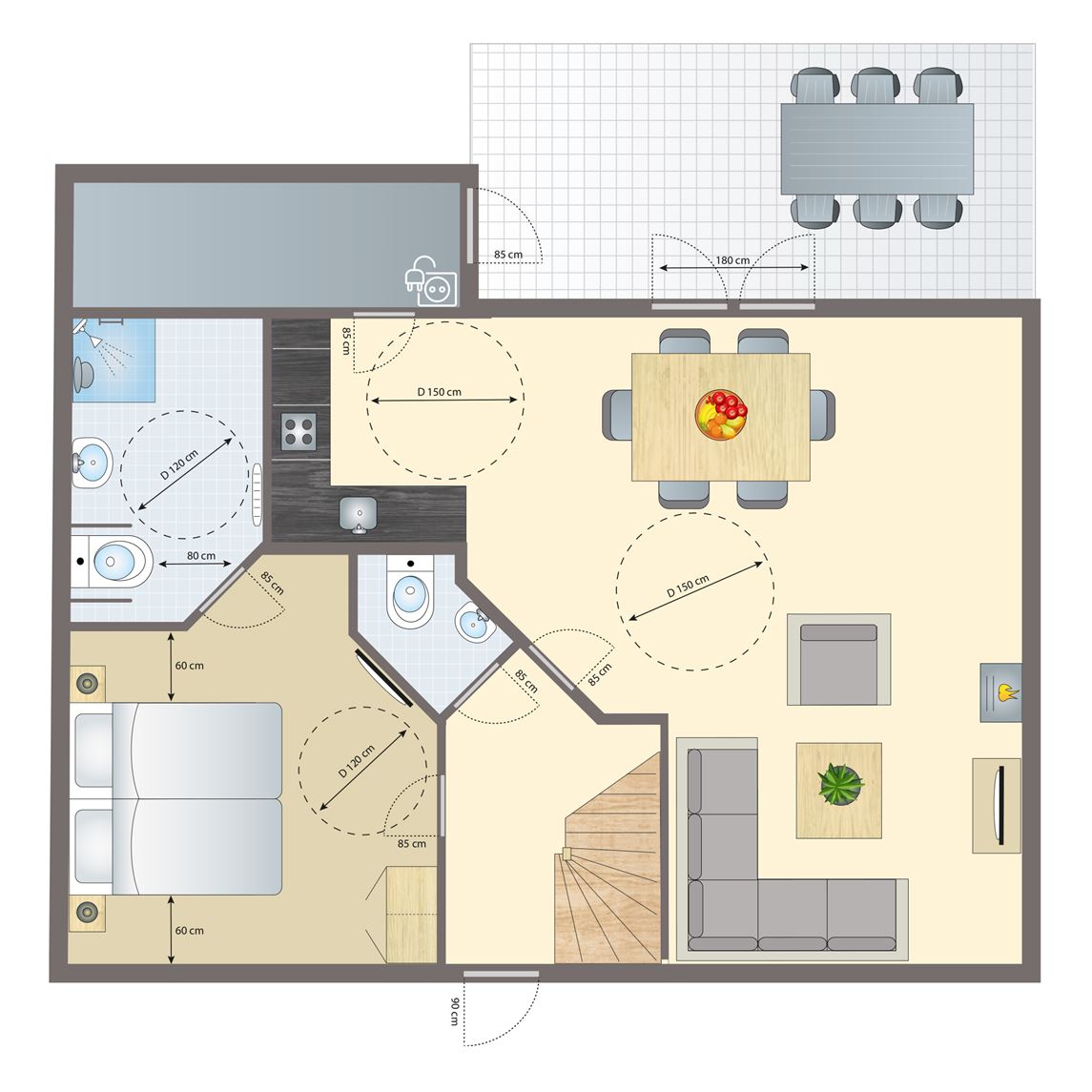 Draaicirkel minimaal 150 cm