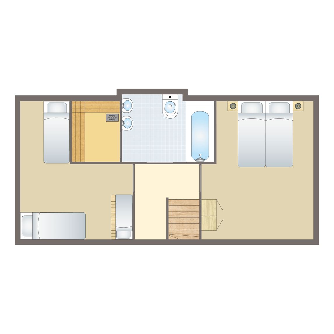 2 slaapkamers met 2 1-persoons Auping boxsprings op de eerste verdieping