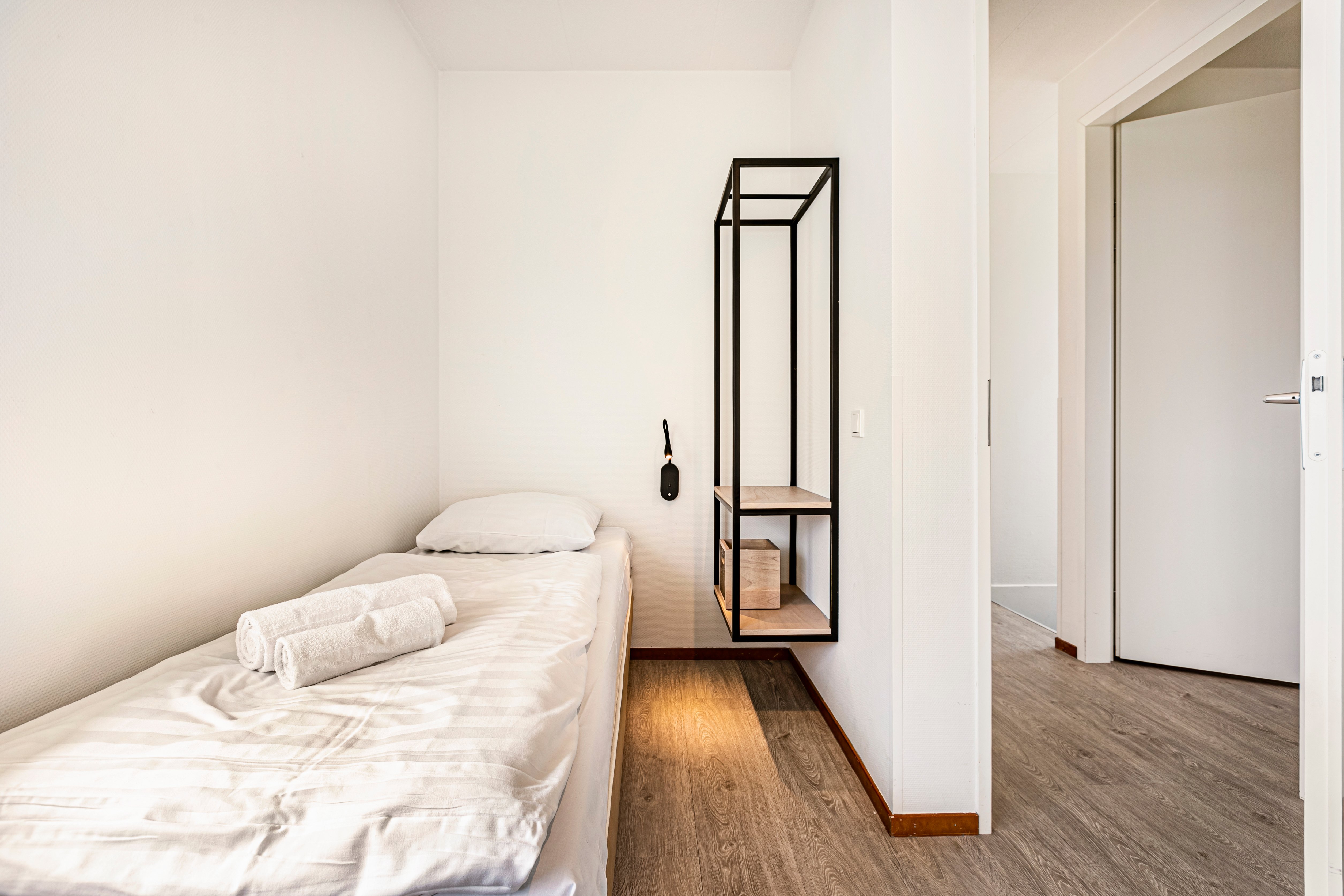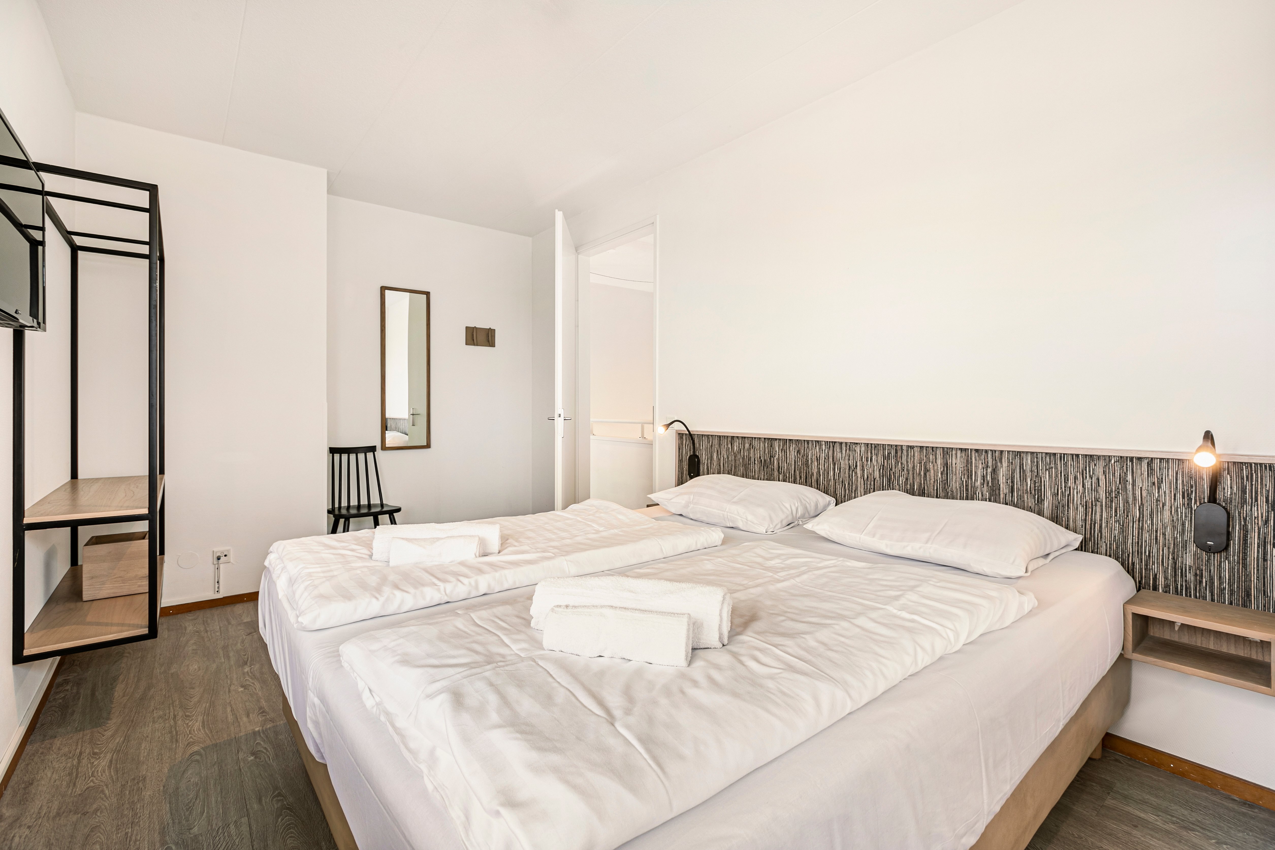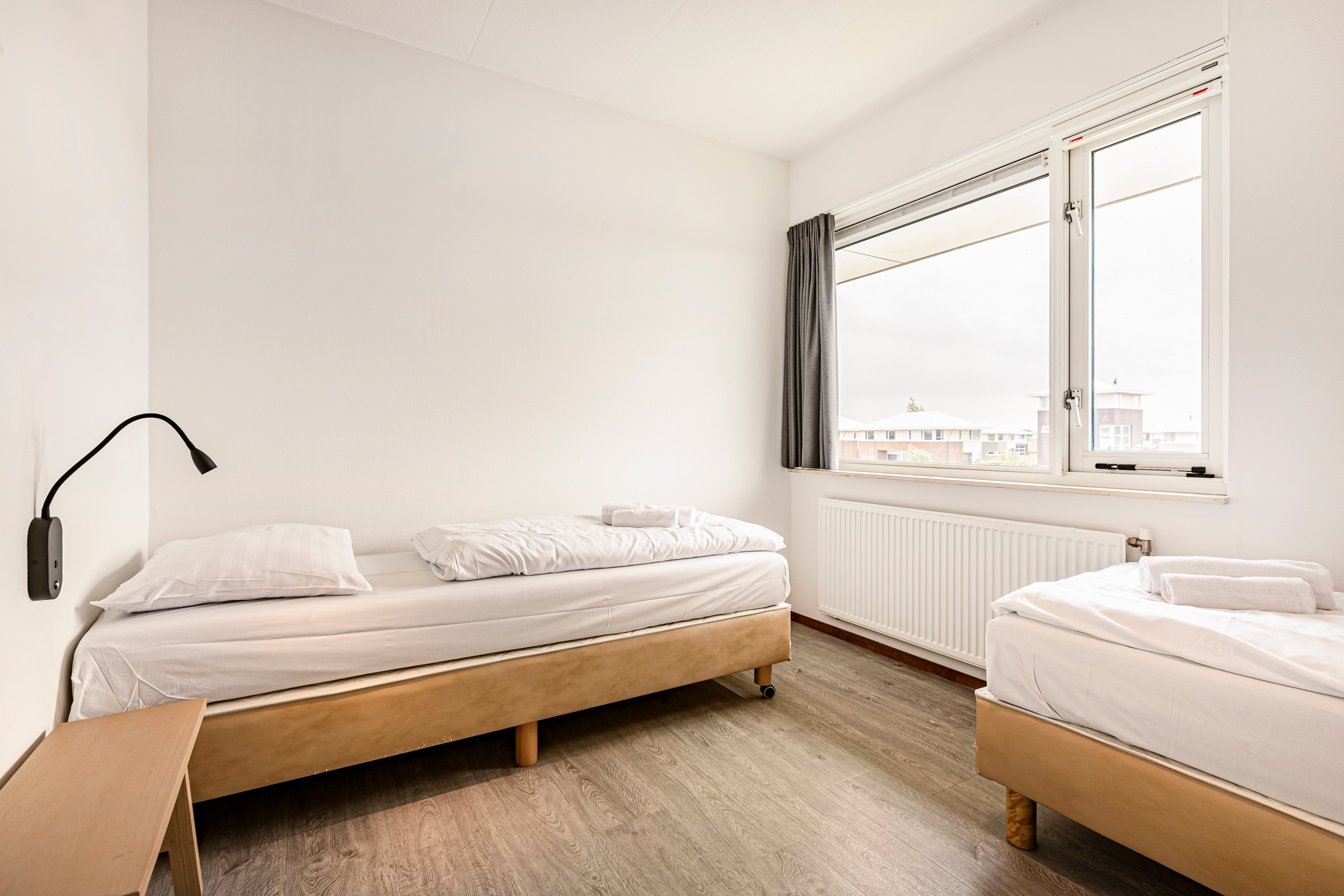 Slaapkamer met 2 1-persoons boxsprings op de eerste verdieping
