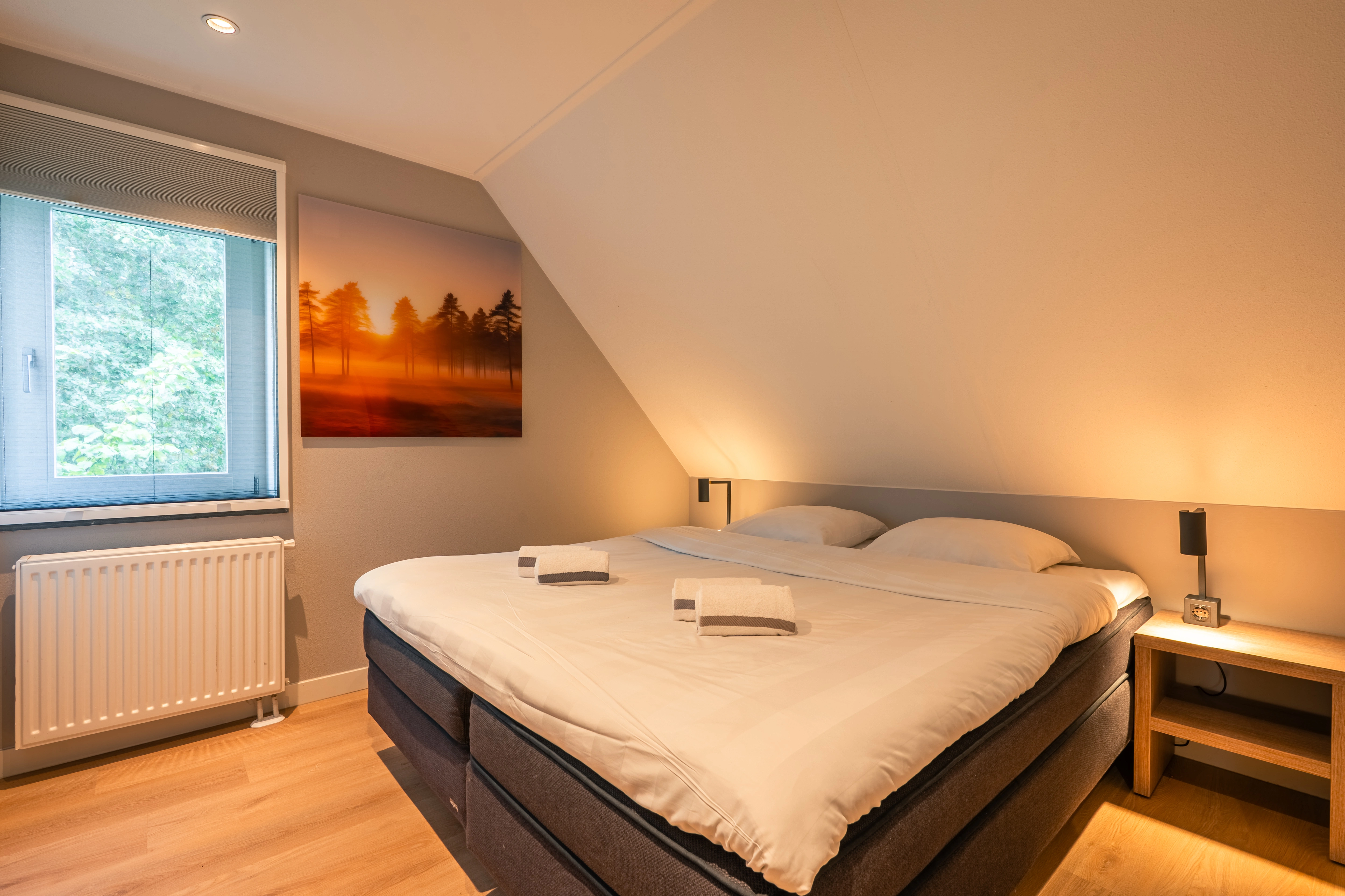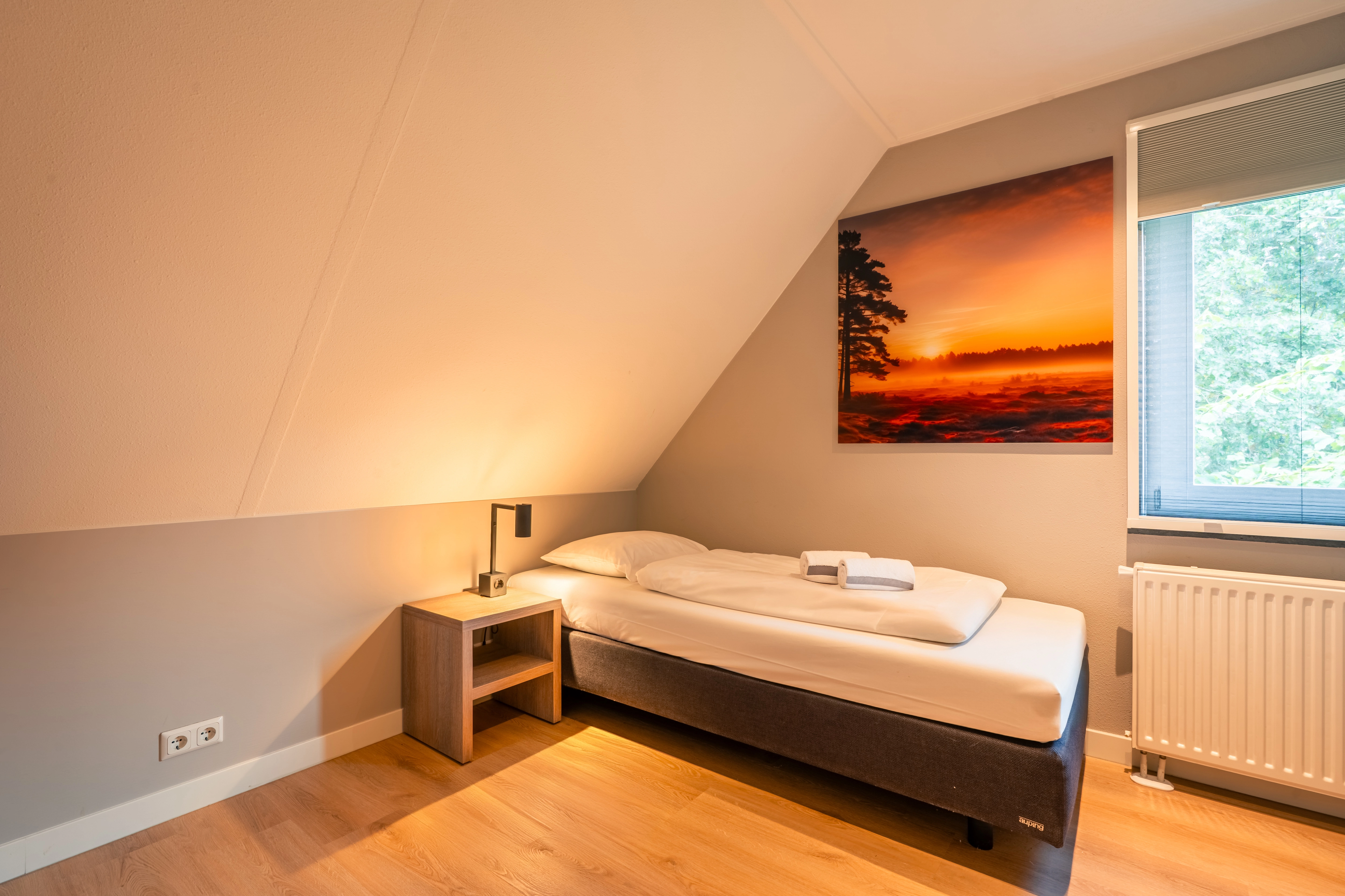 2 slaapkamers met 2-persoons Auping boxspring (2-persoonsdekbed) en softtopper op de eerste verdieping