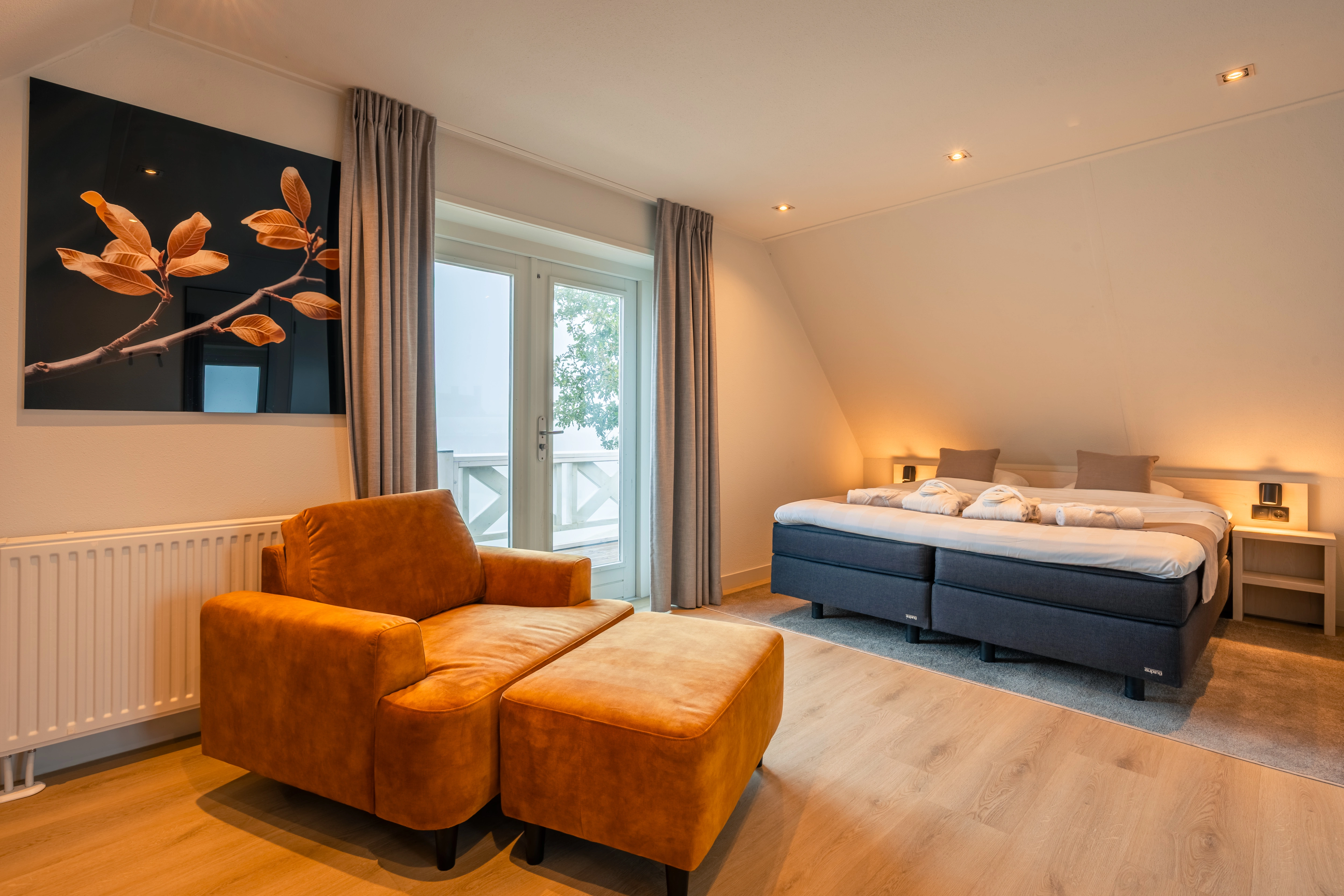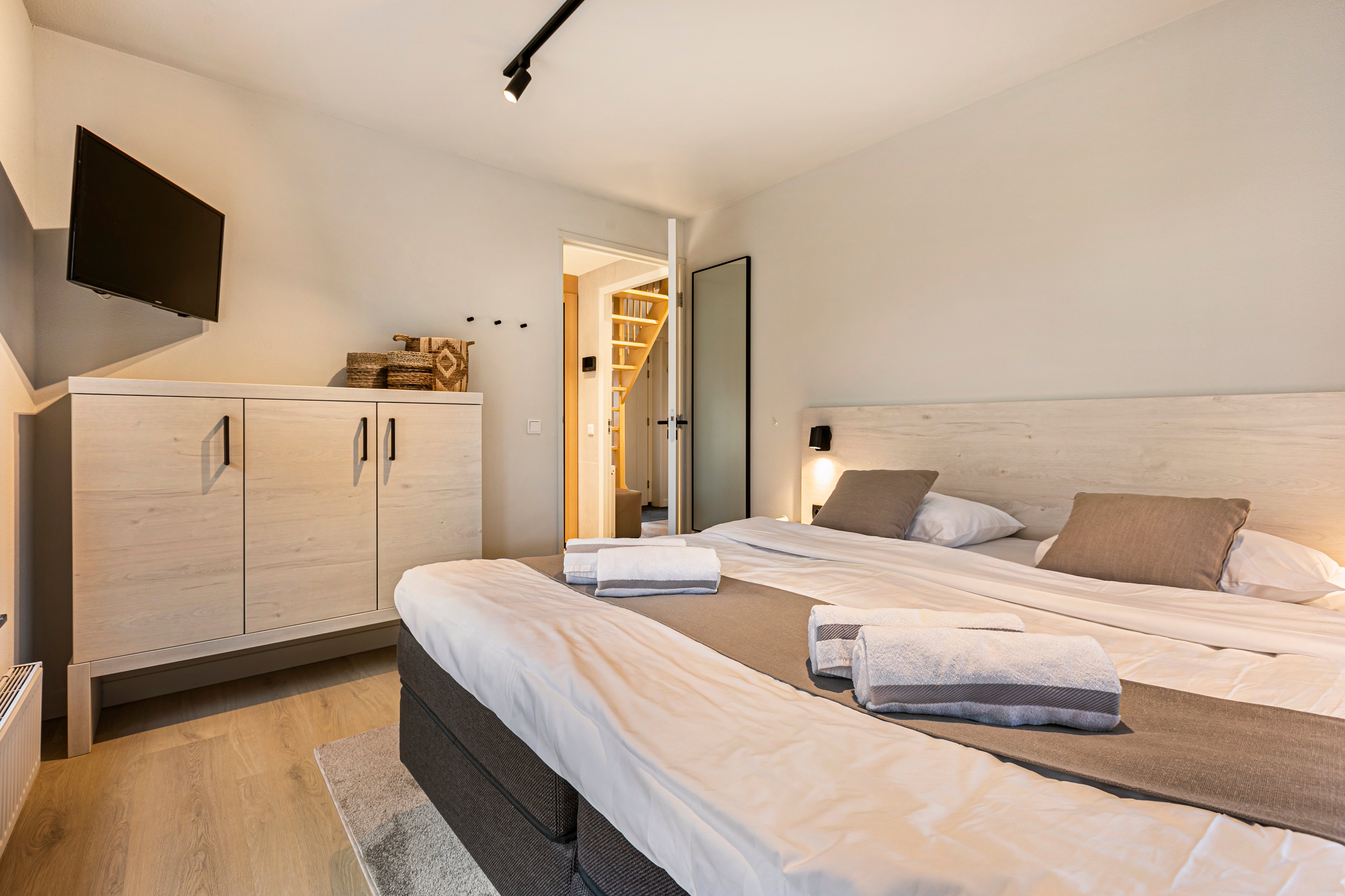 3 slaapkamers met 2-persoons Auping boxspring, 2-persoonssofttopper en flatscreen-tv