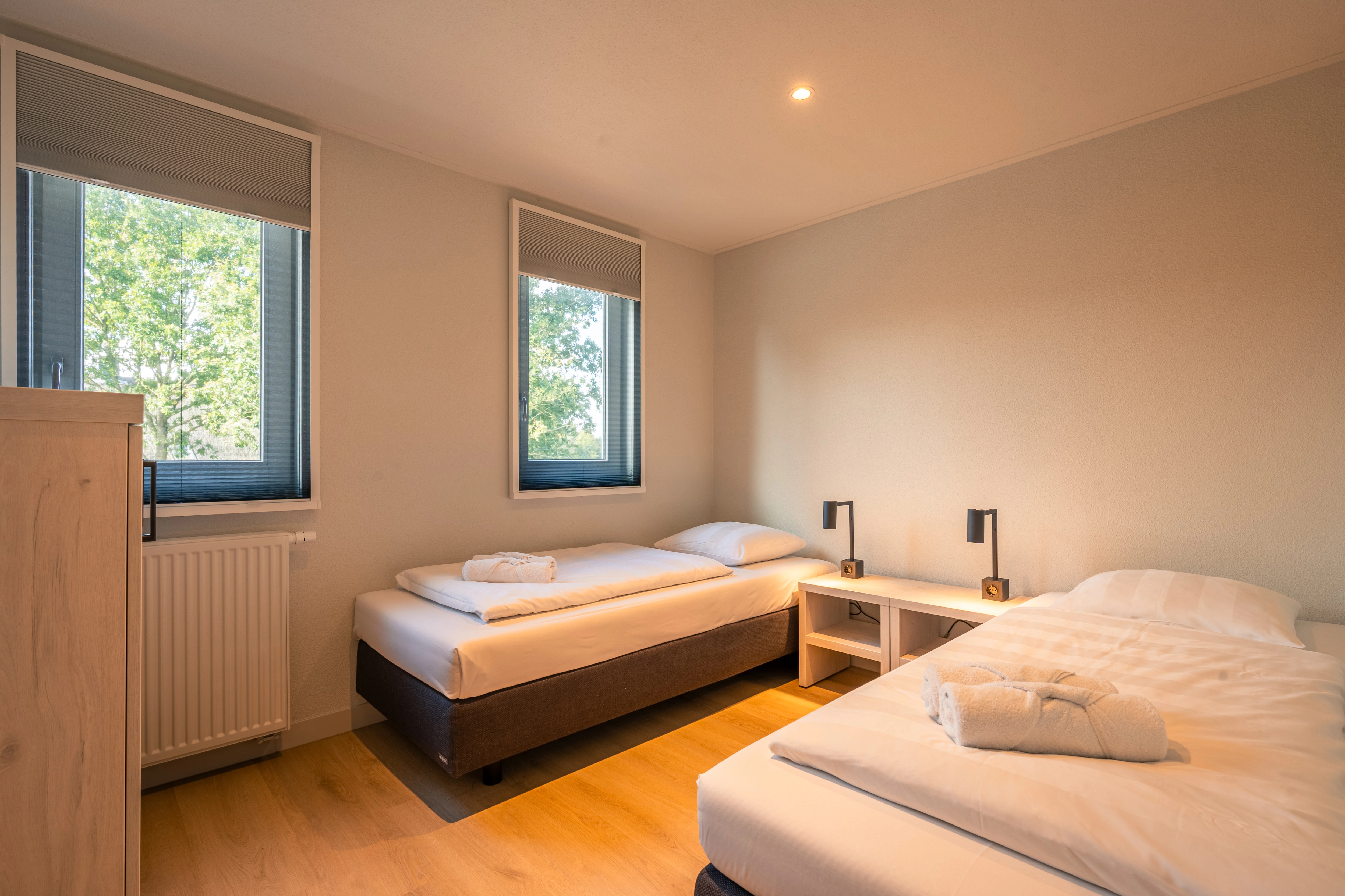 2 slaapkamers met 2 1-persoons Auping boxsprings